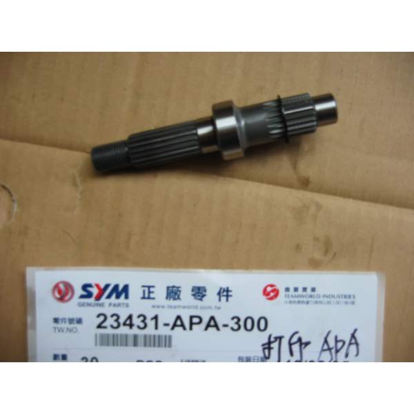 Descripción La pieza de repuesto final shaft número 23431-APA-300 es un recambio original de SYM, lo que significa que es exactamente la misma que la que se montó en la fábrica cuando el vehículo era nuevo.