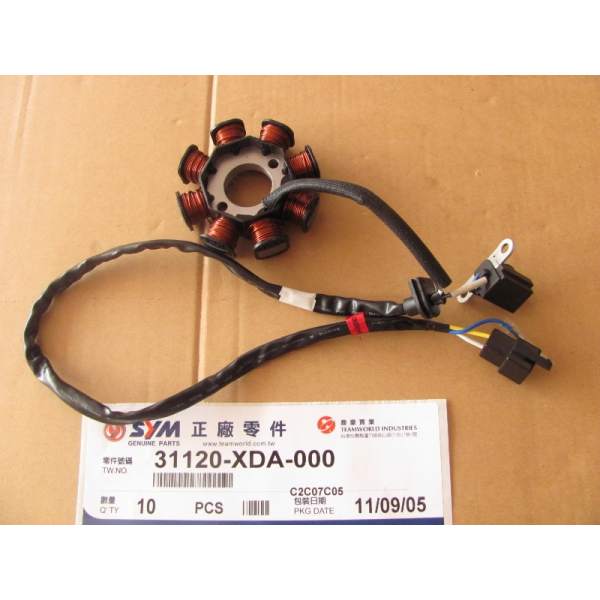 Descripción La pieza de repuesto stator completo número 31120-XDA-000 es un recambio original de SYM, lo que significa que es exactamente la misma que la que se montó en la fábrica cuando el vehículo era nuevo.