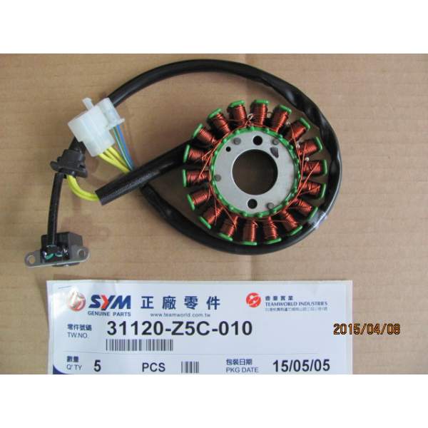 Descripción La pieza de repuesto stator número 31120-Z5C-010 es un recambio original de SYM, lo que significa que es exactamente la misma que la que se montó en la fábrica cuando el vehículo era nuevo.