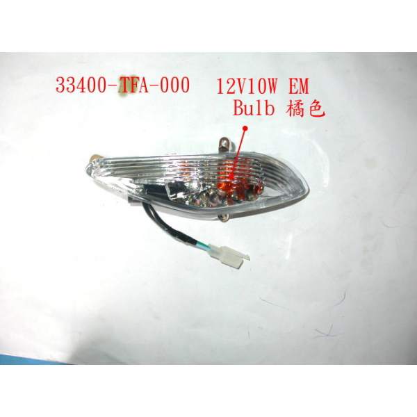 Descripción La pieza de repuesto intermitente delantero derecho número 33400-TFA-000 es un recambio original de SYM, lo que significa que es exactamente la misma que la que se montó en la fábrica cuando el vehículo era nuevo.