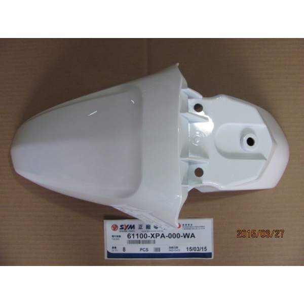 Descripción La pieza de repuesto guardabarros st blanco número 61100-XPA-000-WA es un recambio original de SYM, lo que significa que es exactamente la misma que la que se montó en la fábrica cuando el vehículo era nuevo.