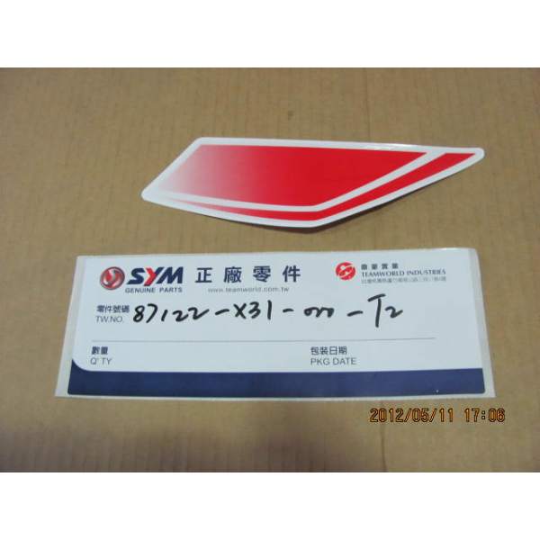 Descripción La pieza de repuesto calca frontal izq a(red) número 87122-X31-000-T2 es un recambio original de SYM, lo que significa que es exactamente la misma que la que se montó en la fábrica cuando el vehículo era nuevo.