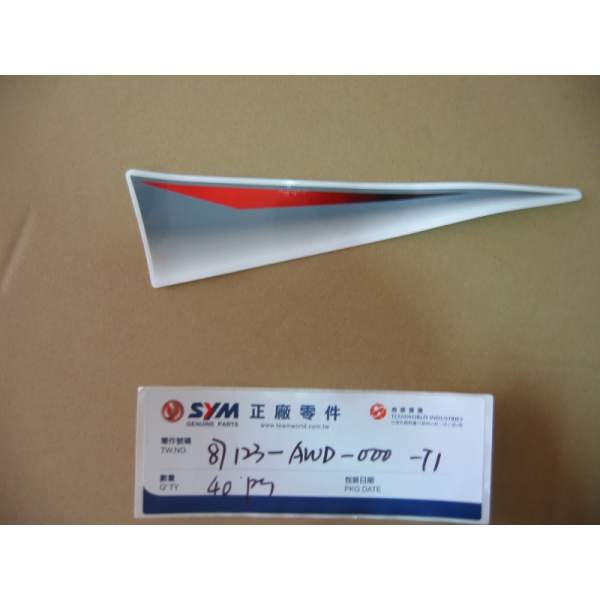 Descripción La pieza de repuesto calca frontal derecha número 87123-AWD-000-T1 es un recambio original de SYM, lo que significa que es exactamente la misma que la que se montó en la fábrica cuando el vehículo era nuevo.