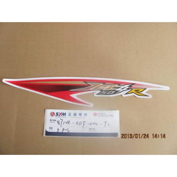 Descripción La pieza de repuesto calca tapa lateral izquierda número 87128-XDF-000-T1 es un recambio original de SYM, lo que significa que es exactamente la misma que la que se montó en la fábrica cuando el vehículo era nuevo.