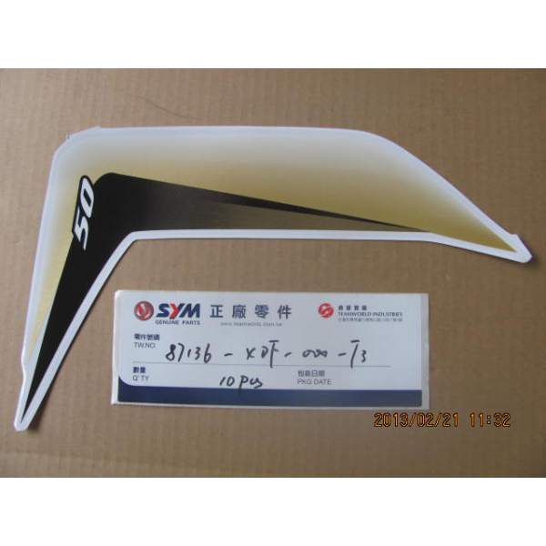 Descripción La pieza de repuesto calca frontal jet 4 número 87136-XDF-000-T3 es un recambio original de SYM, lo que significa que es exactamente la misma que la que se montó en la fábrica cuando el vehículo era nuevo.