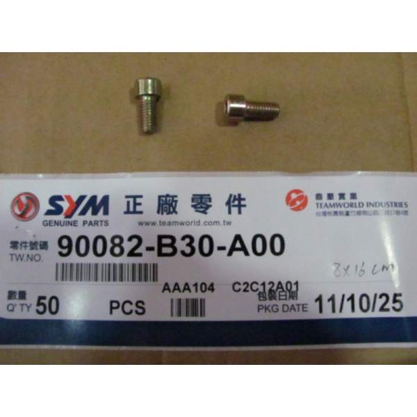 Descripción La pieza de repuesto perno 8*16 número 90082-B30-A00 es un recambio original de SYM, lo que significa que es exactamente la misma que la que se montó en la fábrica cuando el vehículo era nuevo.